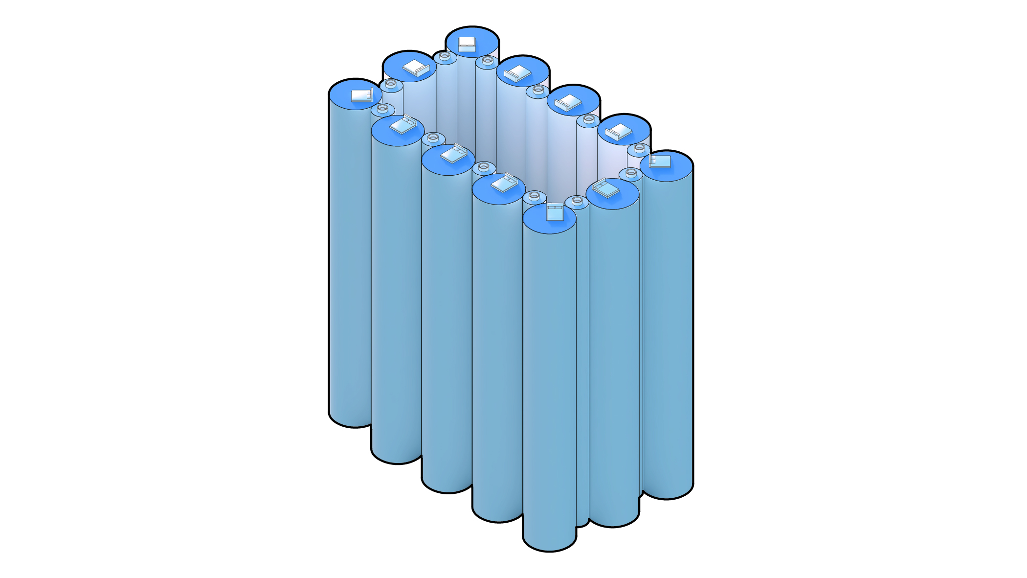 A modular sofa expressed through the concept of a building block, a three-dimensional pixel – a voxel. The grid-like system creates a family of units that can be configured into multiple scenarios, from a single unit to large configurations. The Voxel System is a way of addressing our ever-changing need to change things up during our lifetime.